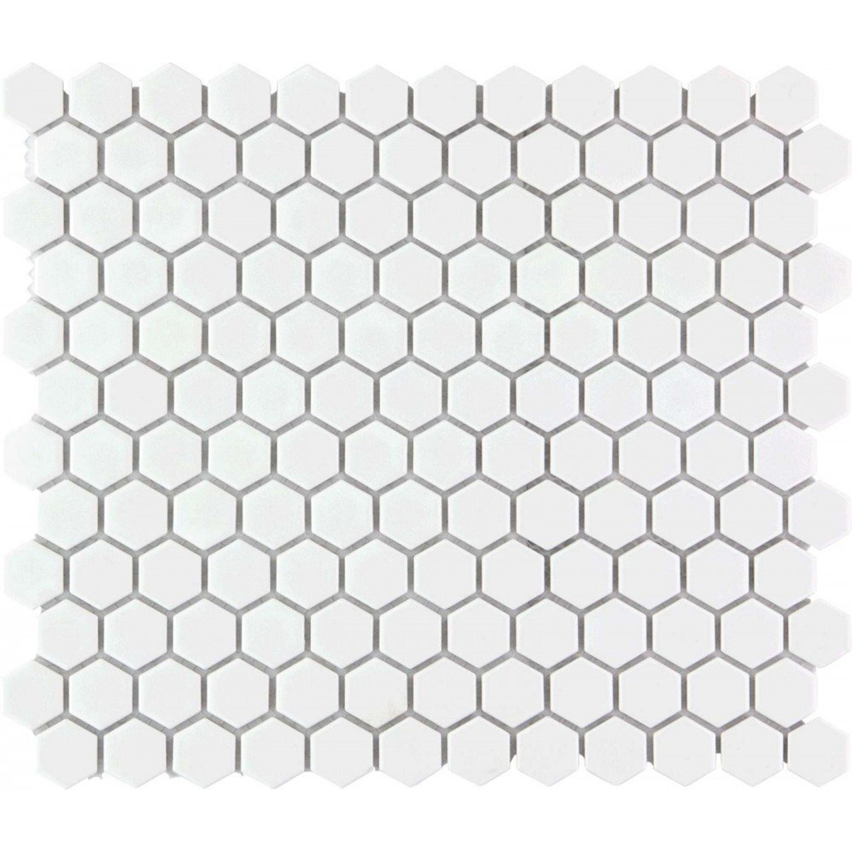 The Mosaic Factory Barcelona mozaïektegel 2.3x2.6x0.5cm voor wand en vloer voor binnen en buiten Zeshoek Keramiek Wit