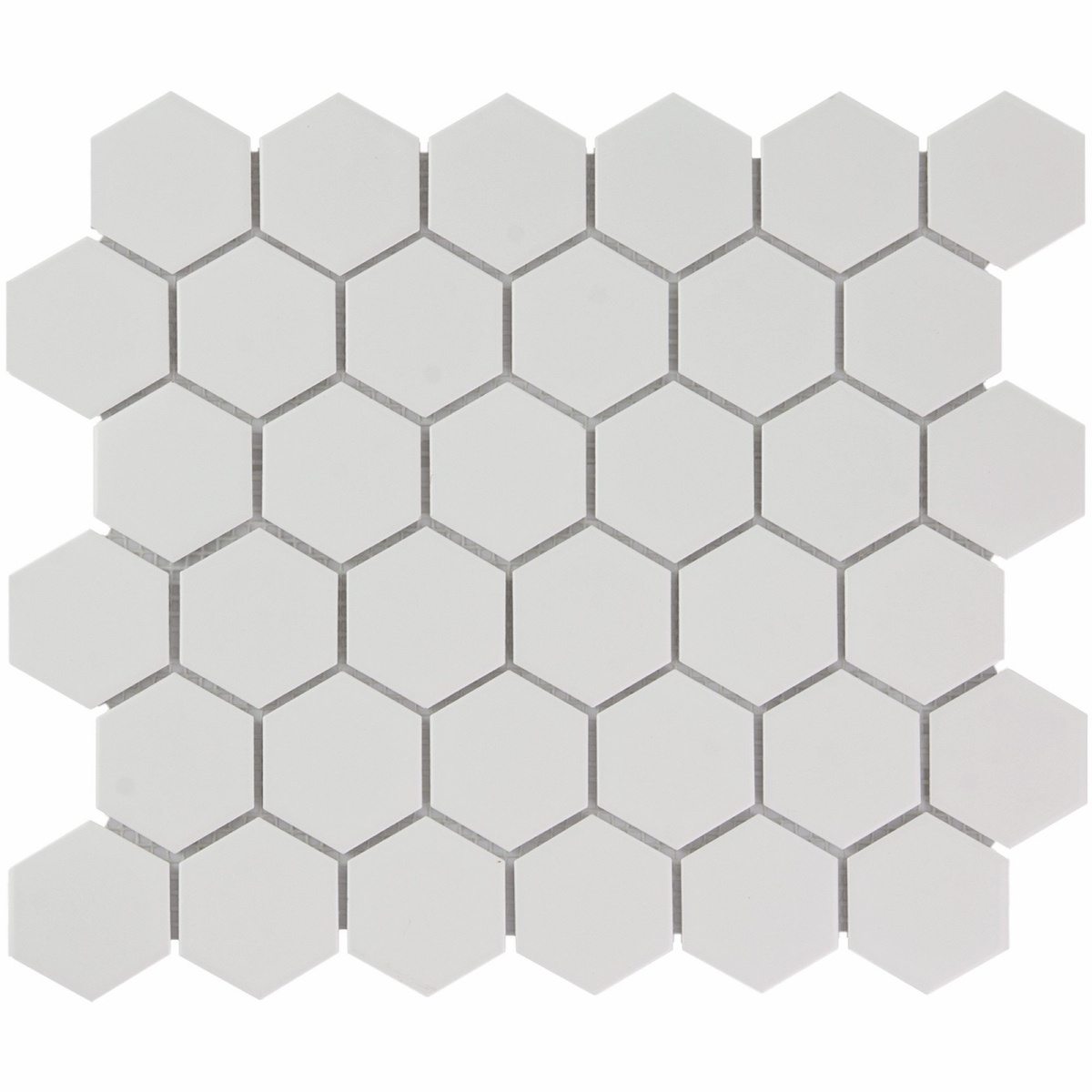 The Mosaic Factory Barcelona mozaïektegel 5.1x5.9x0.6cm wandtegel voor binnen en buiten Zeshoek Keramiek Extra Wit