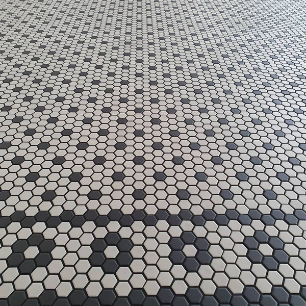 The Mosaic Factory London Hexagon Porselein Wit + Zwart 2.3x2.6cm