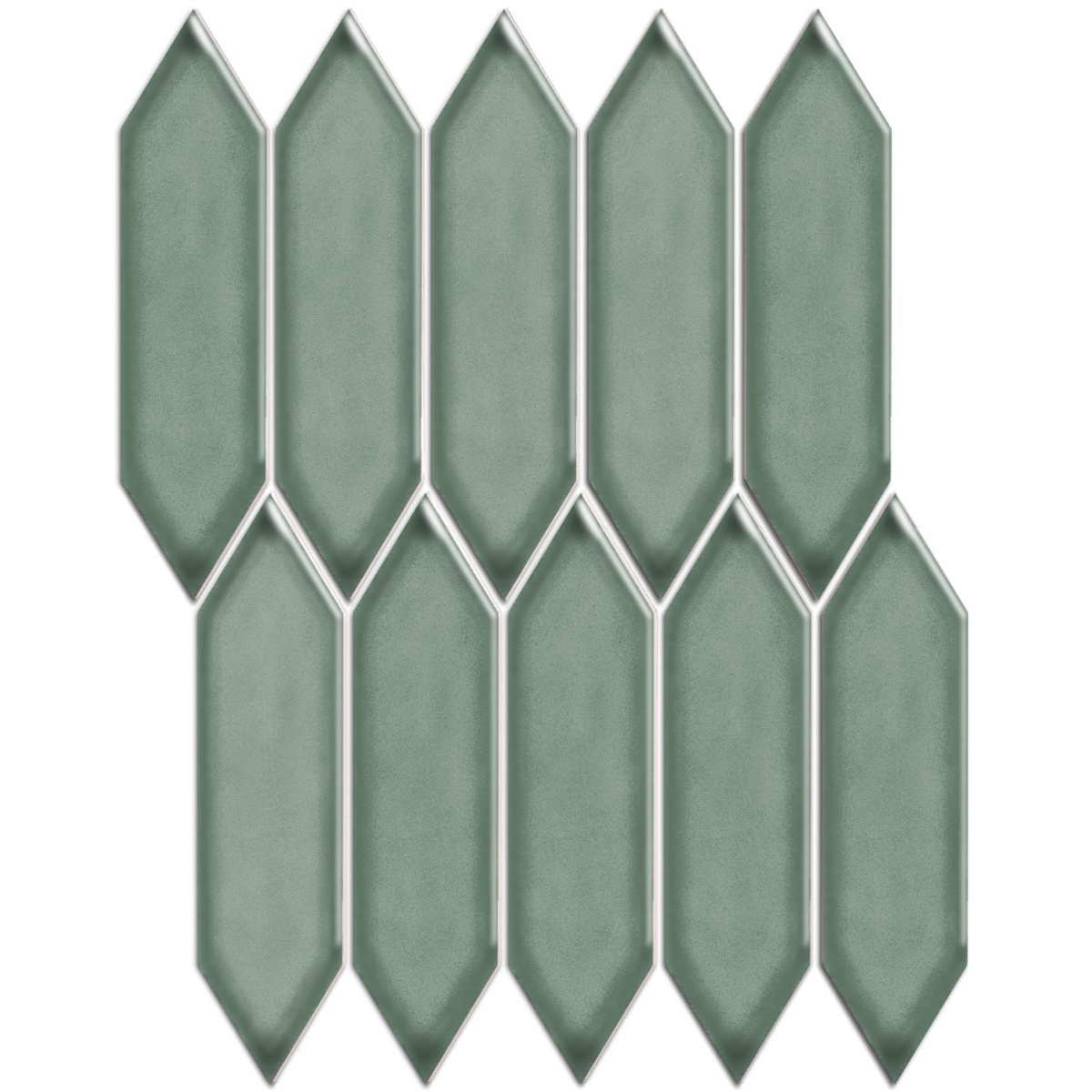 The Mosaic Factory Paris Picket mozaïektegel 4.8x19.5x.6.5cm wandtegel voor binnen en buiten Glans Groen