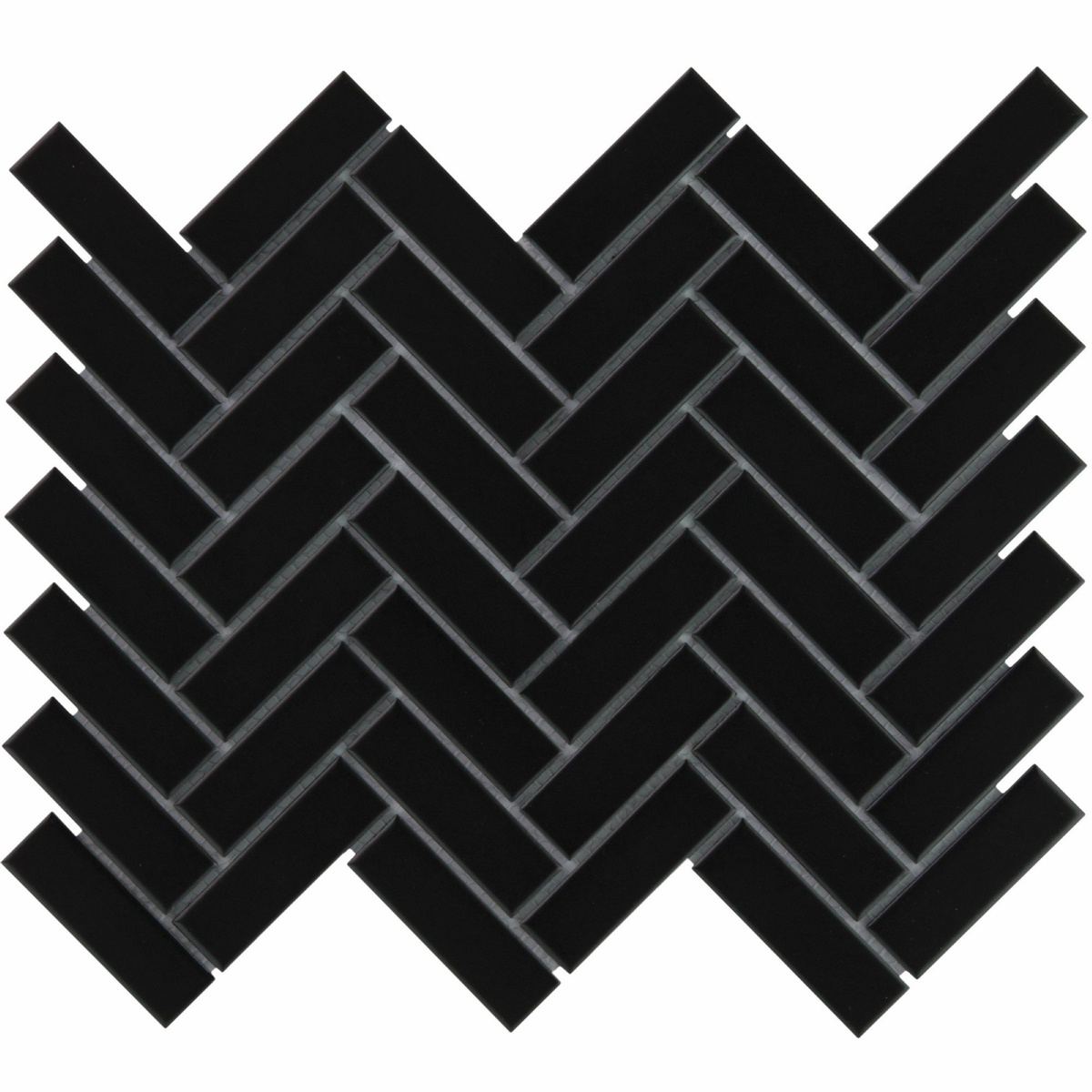 The Mosaic Factory Paris mozaïektegel 2.3x7.3x0.6cm voor wand en vloer voor binnen en buiten visgraat Keramiek Mat Zwart