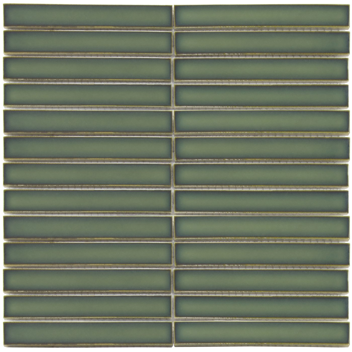 The Mosaic Factory Sevilla mozaïektegel 2x14.5x0.8cm voor wand kitkat finger Keramiek Forest Green Groen