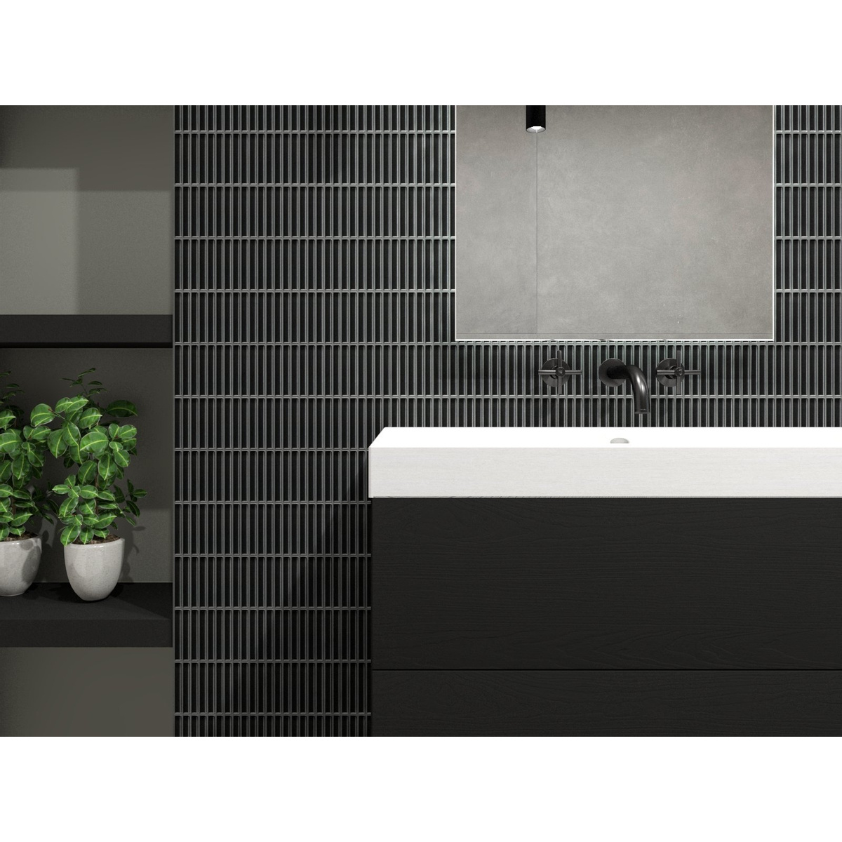 De Sevilla mozaïektegel van The Mosaic Factory is een unieke slanke tegel die zowel horizontaal als verticaal prachtig tot zijn recht komt. Deze tegel, ook wel bekend als kitkat-mozaïek of mozaïekvingers, is gemaakt van hoogwaardig geglazuurd porselein en is beschikbaar in verschillende kleuren, waaronder de kleur Zwart glans.