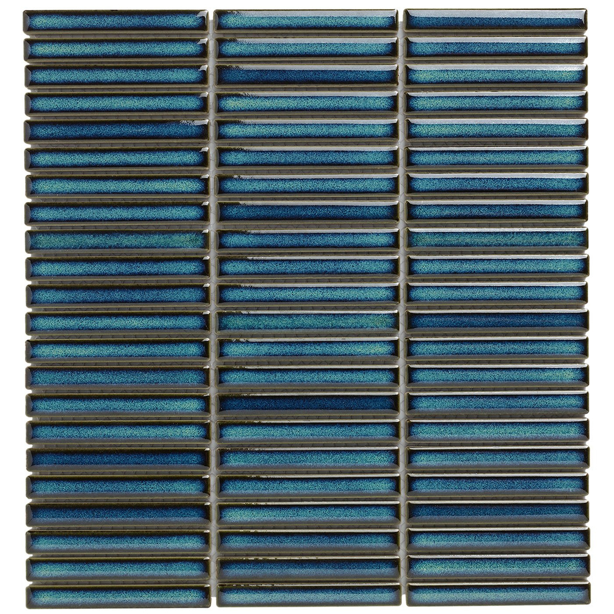 The Mosaic Factory Sevilla mozaïektegel 1.2x9.2x0.8cm voor wand kitkat mini finger Keramiek Glans Azuur-Blauw-Spikkel
