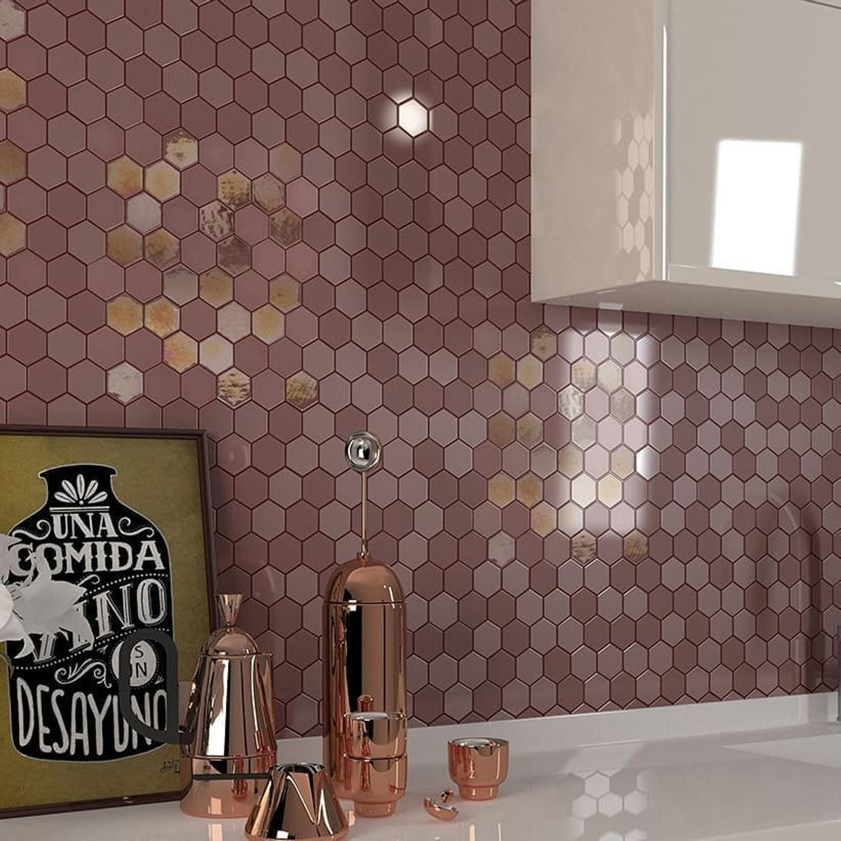 The Mosaic Factory Valencia mozaïektegel 4.3x4.9x0.5cm hexagon burgundy mat en glans voor wand en vloer en voor binnen en buiten vorstbestendig