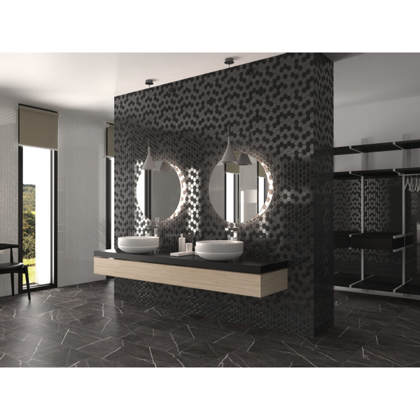 The Mosaic Factory Valencia Hexagon Glas Zwart 4.3x4.9cm
