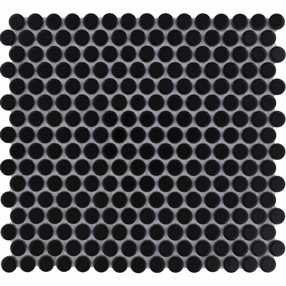 The Mosaic Factory Venice Pennyround mozaïektegel 1.9x0.5cm wandtegel voor binnen en buiten Rond Keramiek Zwart