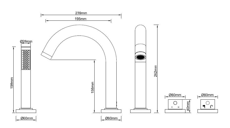 Offerte aanvraag voor Wiesbaden Caral 4-gats badrandthermostaat afbouwset | Mat zwart
