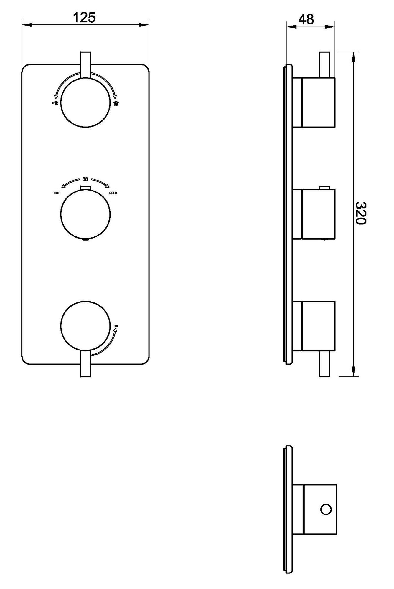 Wiesbaden Caral afbouwdeel inbouwthermostaat 3 weg | Geborsteld messing