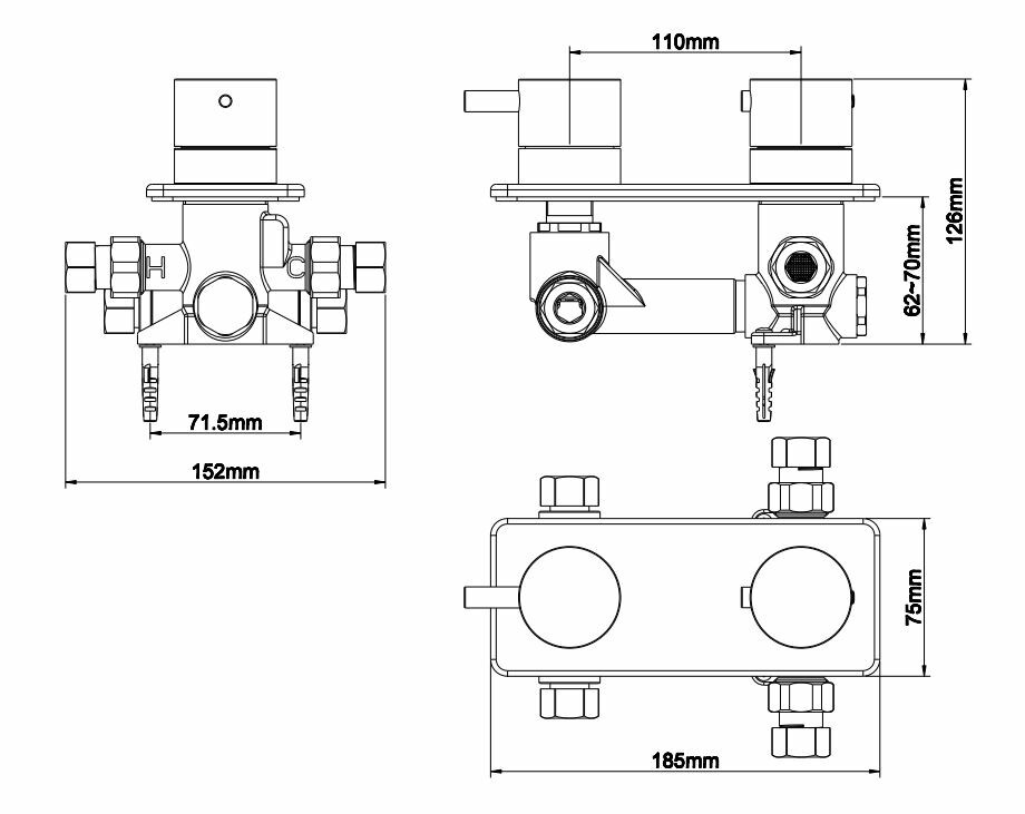 Wiesbaden Caral inbouw 2-wegs douchethermostaat rond | Geborsteld staal