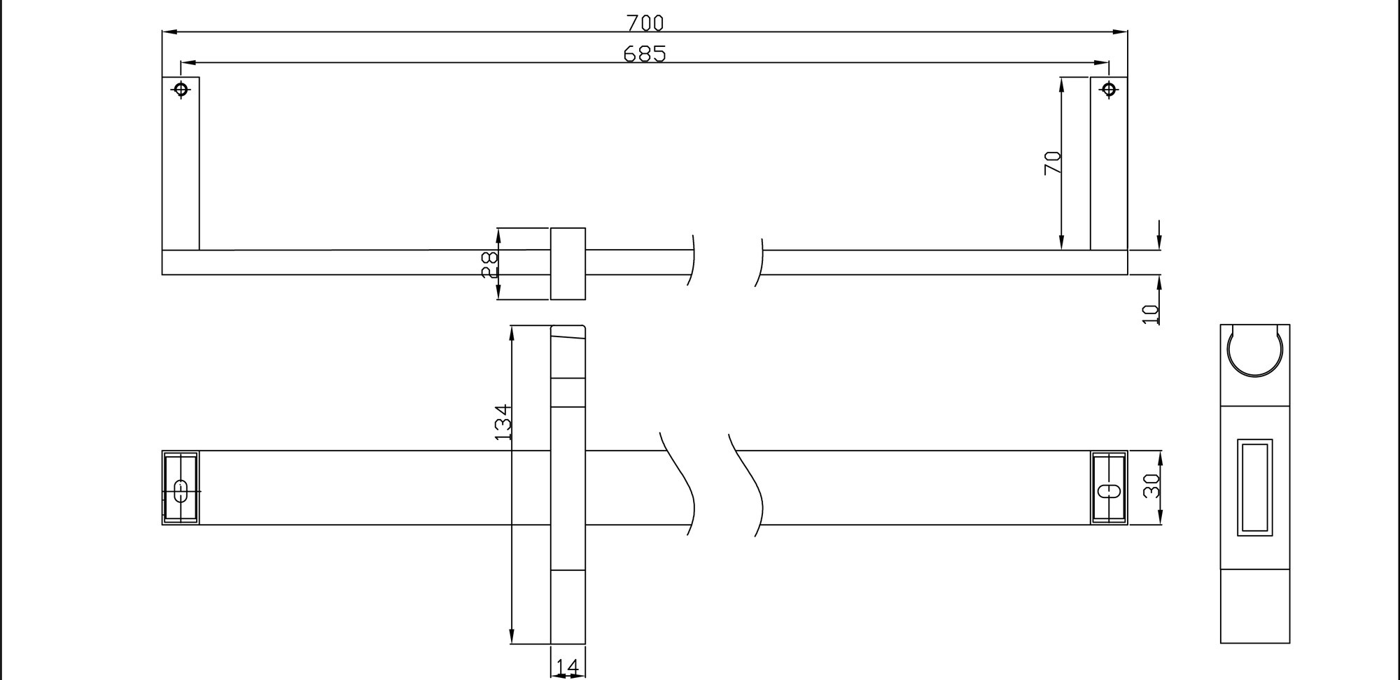 Wiesbaden | Chroom | messing glijstang met glijstuk vierkant 700mm