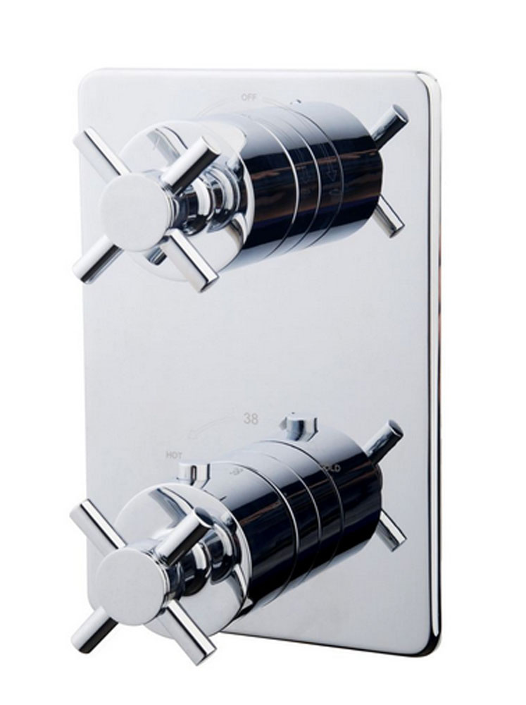 Wiesbaden Cross afbouwdeel inbouwthermostaat 2 weg | Chroom