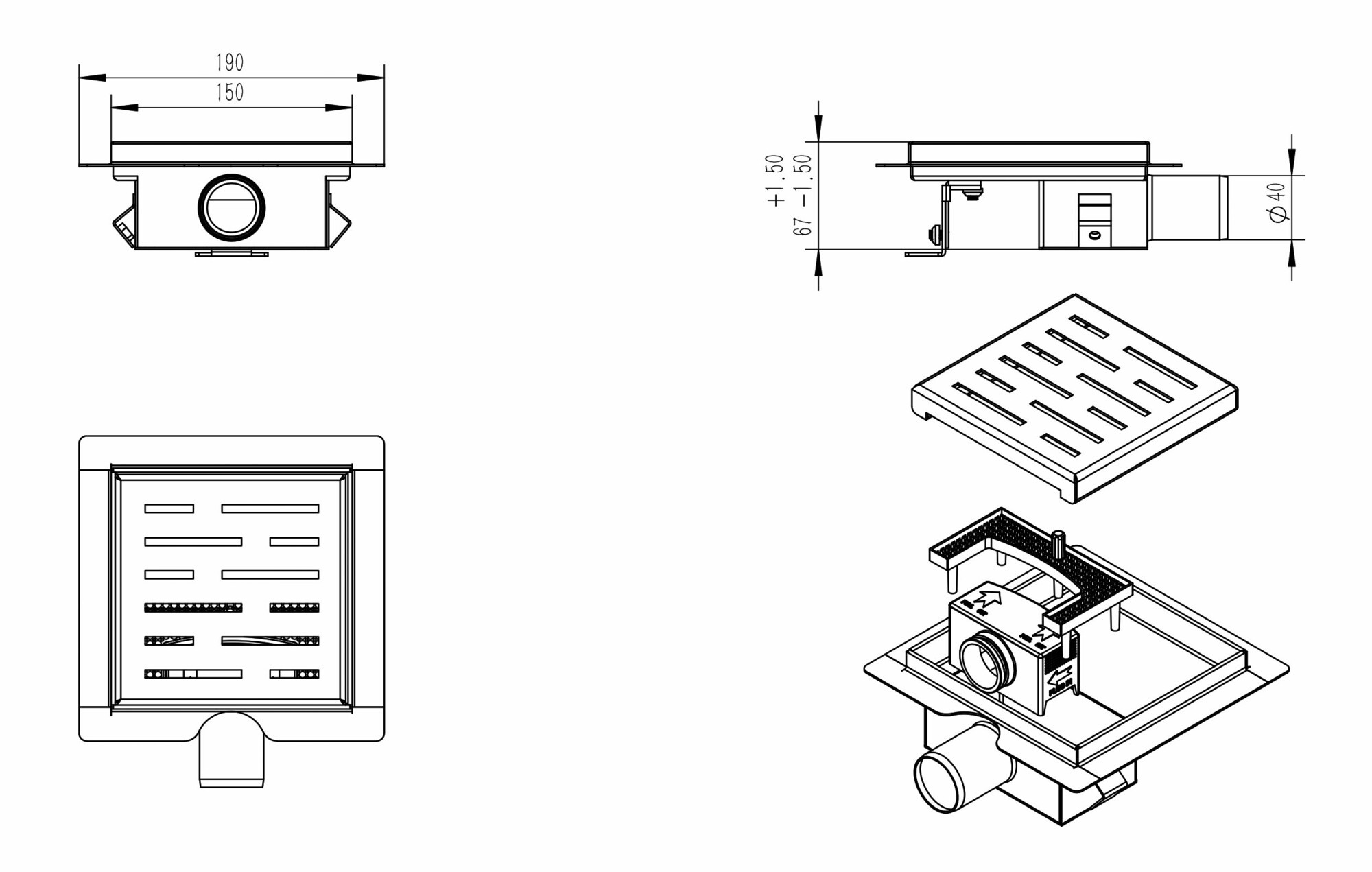 Offerte aanvraag voor Wiesbaden doucheput met flens en zijuitlaat 15x15cm | Mat zwart