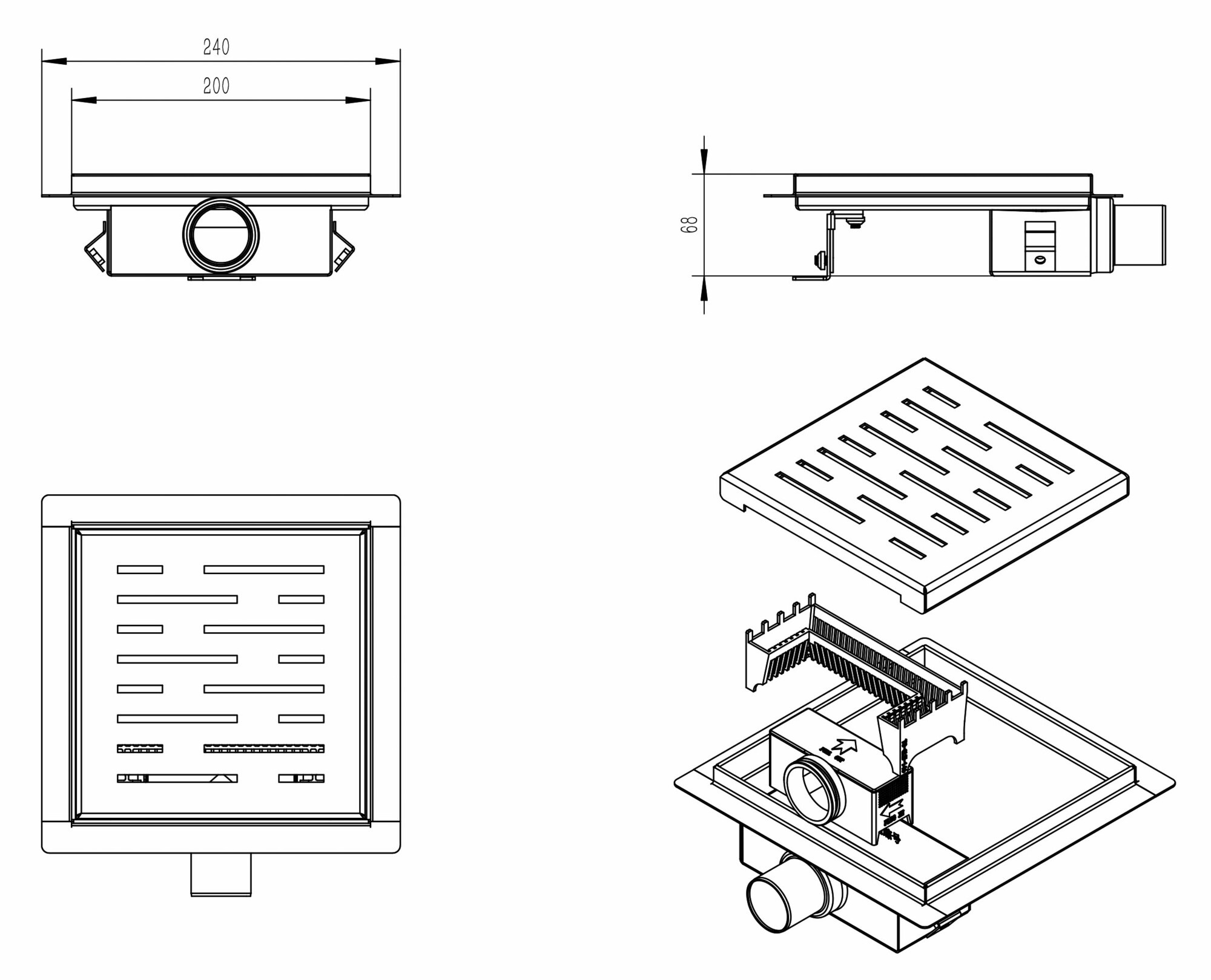Offerte aanvraag voor Wiesbaden doucheput met flens en zijuitlaat 20x20cm | Mat zwart
