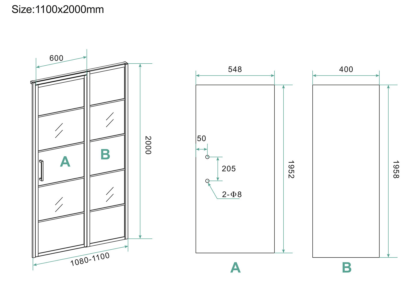 Wiesbaden Horizon nisdeur R/L met vast deel 110cm 8mm NANO