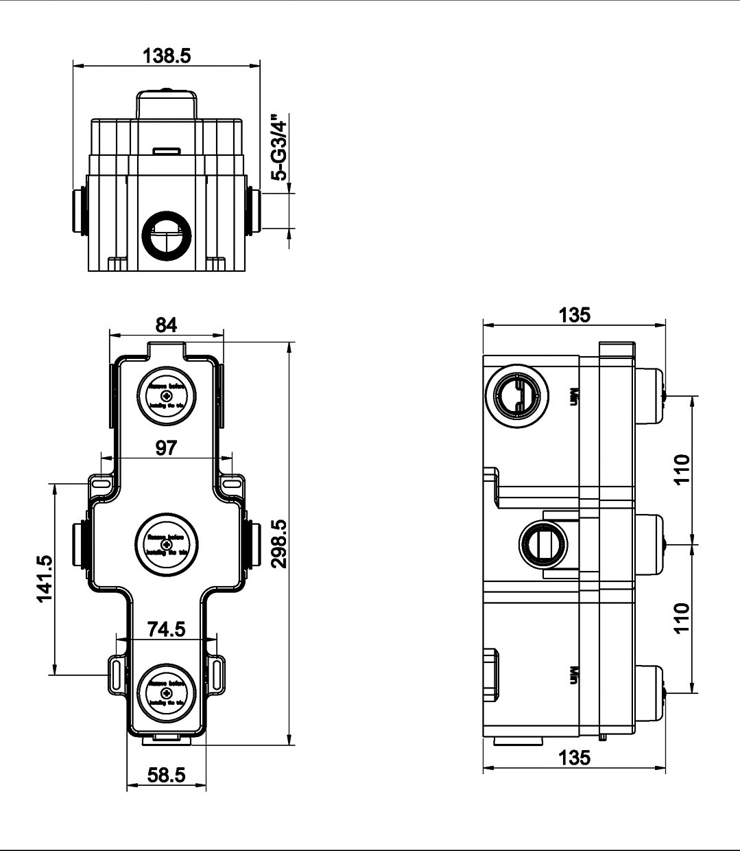 Wiesbaden inbouwdeel met box 3-wegs douchethermostaat