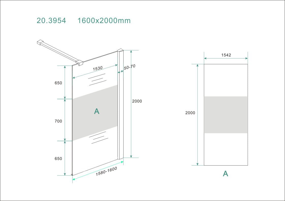Wiesbaden inloopdouche met Muurprofiel 1600x2000 8mm NANO Matglas