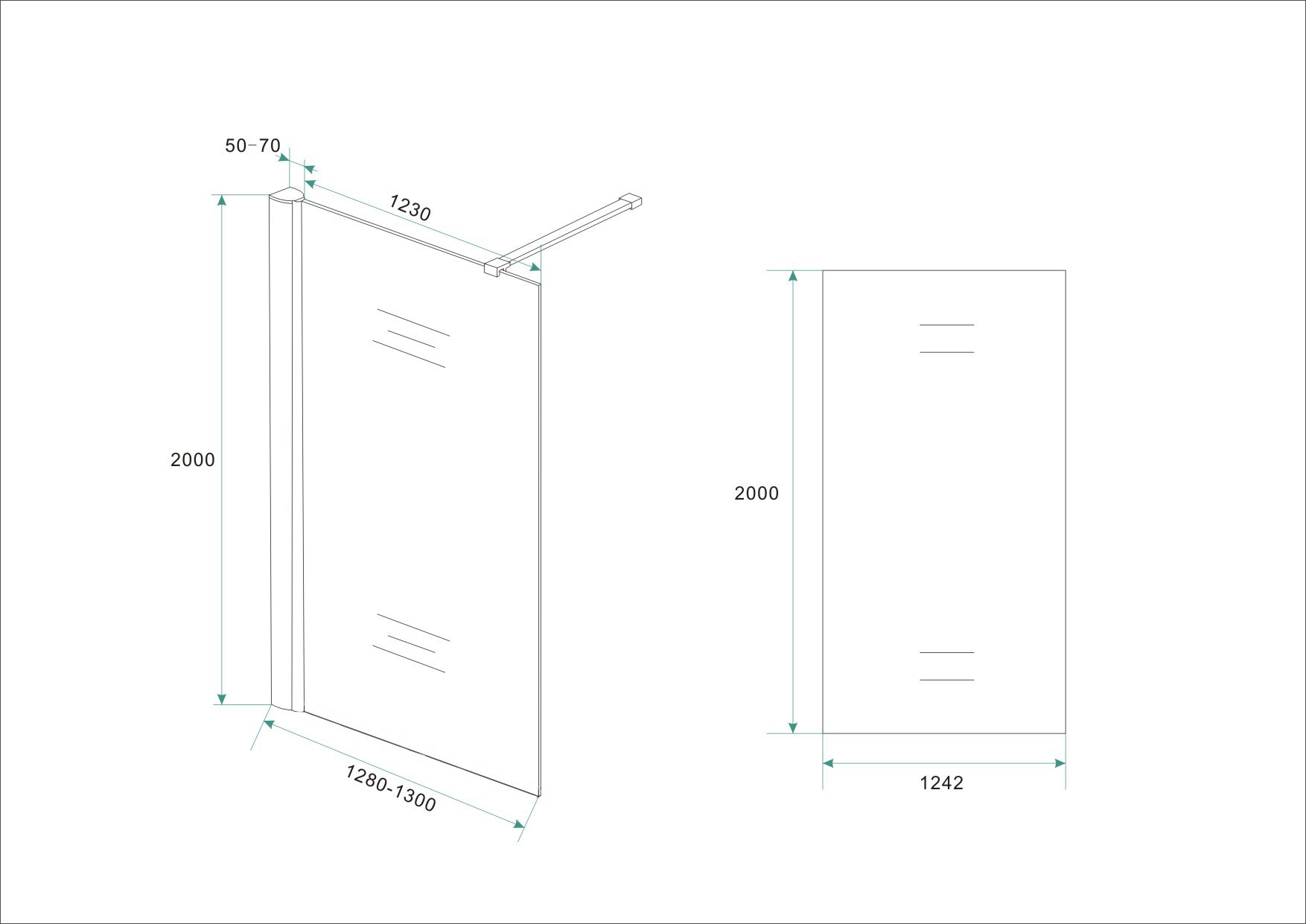 Wiesbaden inloopdouche met muurprofiel 1300x2000 10mm NANO glas
