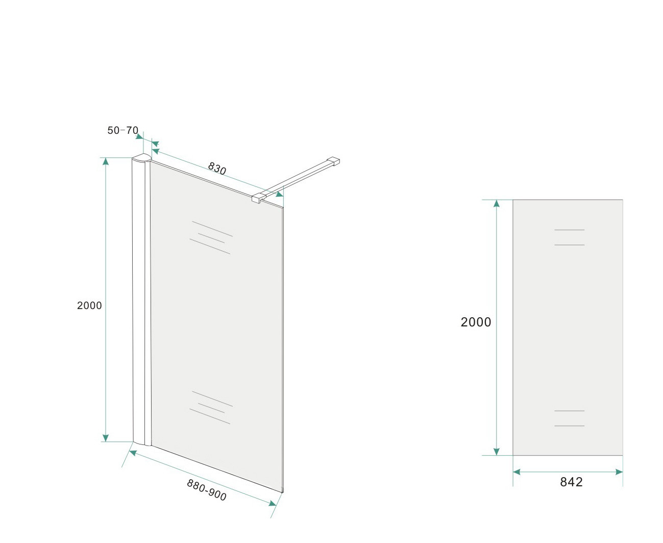 Wiesbaden inloopdouche met muurprofiel 900x2000 10mm NANO geheel matglas