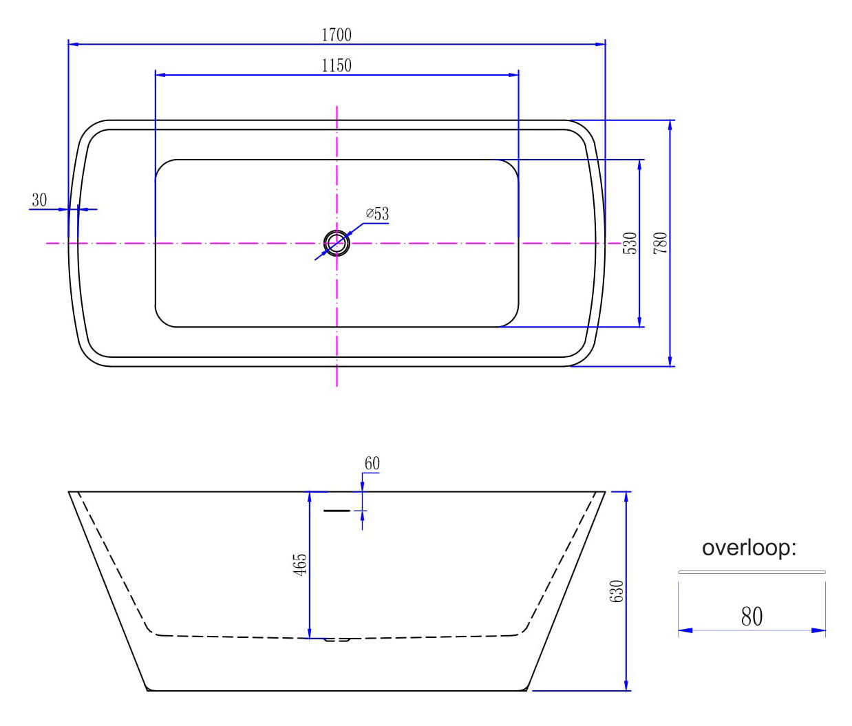 Offerte aanvraag voor Wiesbaden Larx vrijstaand ligbad 170 x 78cm acryl | Glans wit | met waste | Glans wit