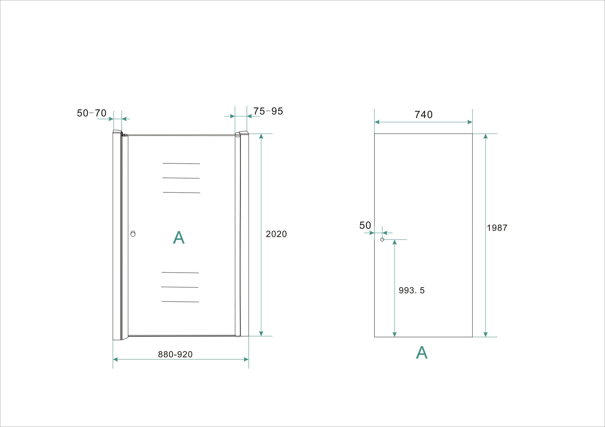 LET OP: Zodra je deze nisdeur combineert met een zijwand komt het aanslagprofiel van 50 tot 70 mm te vervallen.