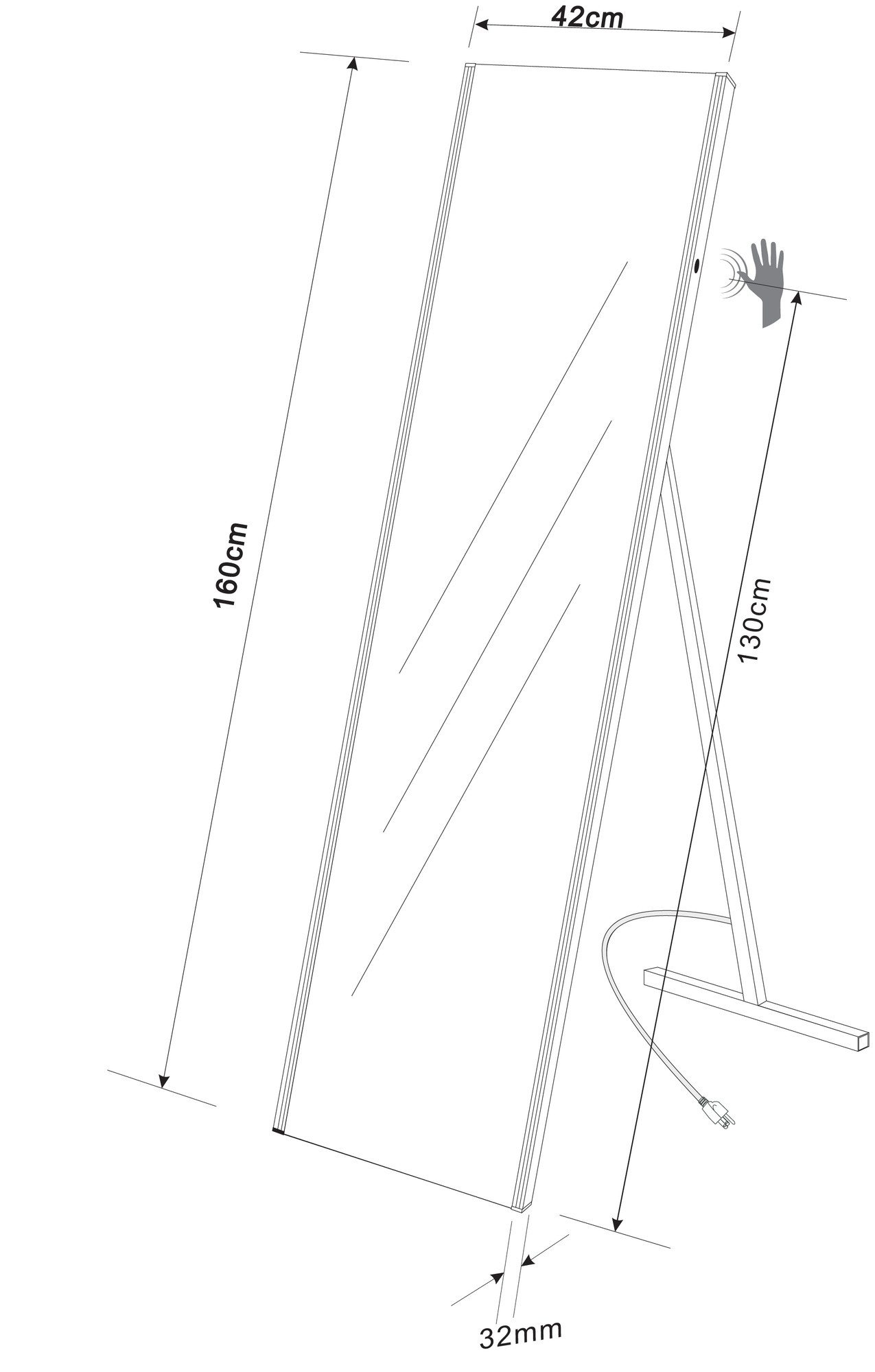 Wiesbaden passpiegel 1600x420 met led verlichting
