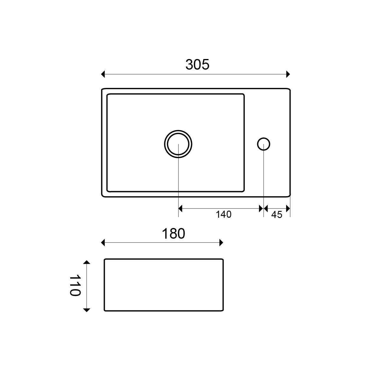 Wiesbaden Rhea xxs fontein links 30,5 x 18 x 11cm keramiek - Glans wit