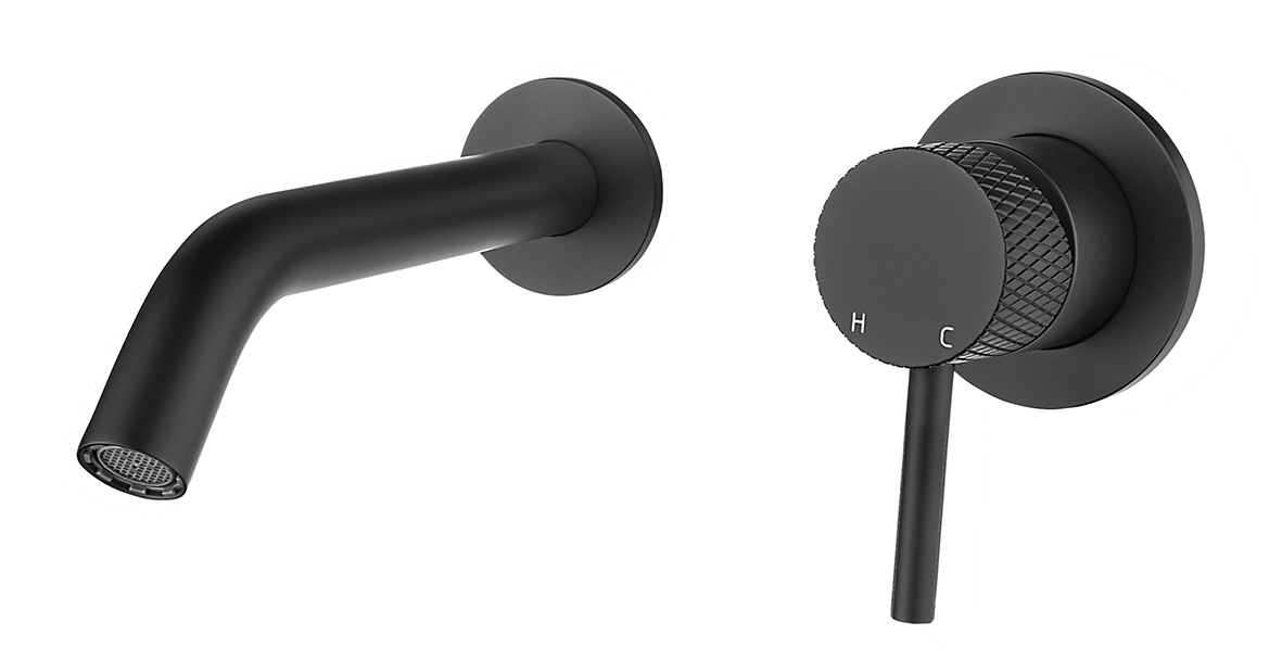 Wiesbaden Ribbd inbouw-wastafelmengkraan eenhendel compleet | Mat zwart