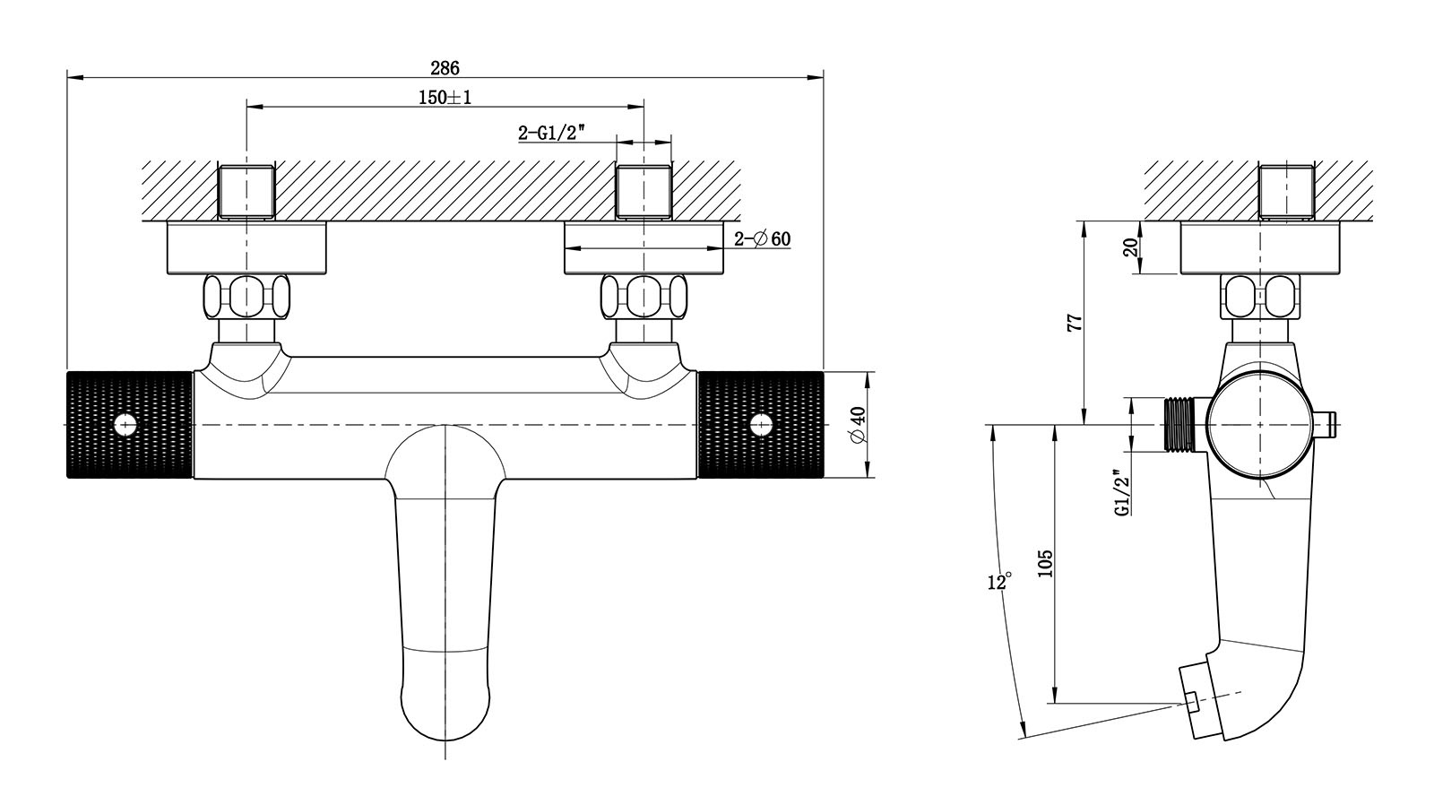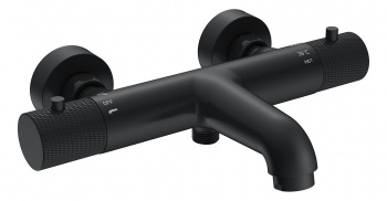 Wiesbaden Ribbd thermostatische badmengkraan hartafstand 15cm | Mat zwart