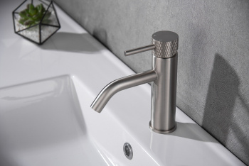 Wiesbaden Ribbd wastafelmengkraan - Geborsteld staal