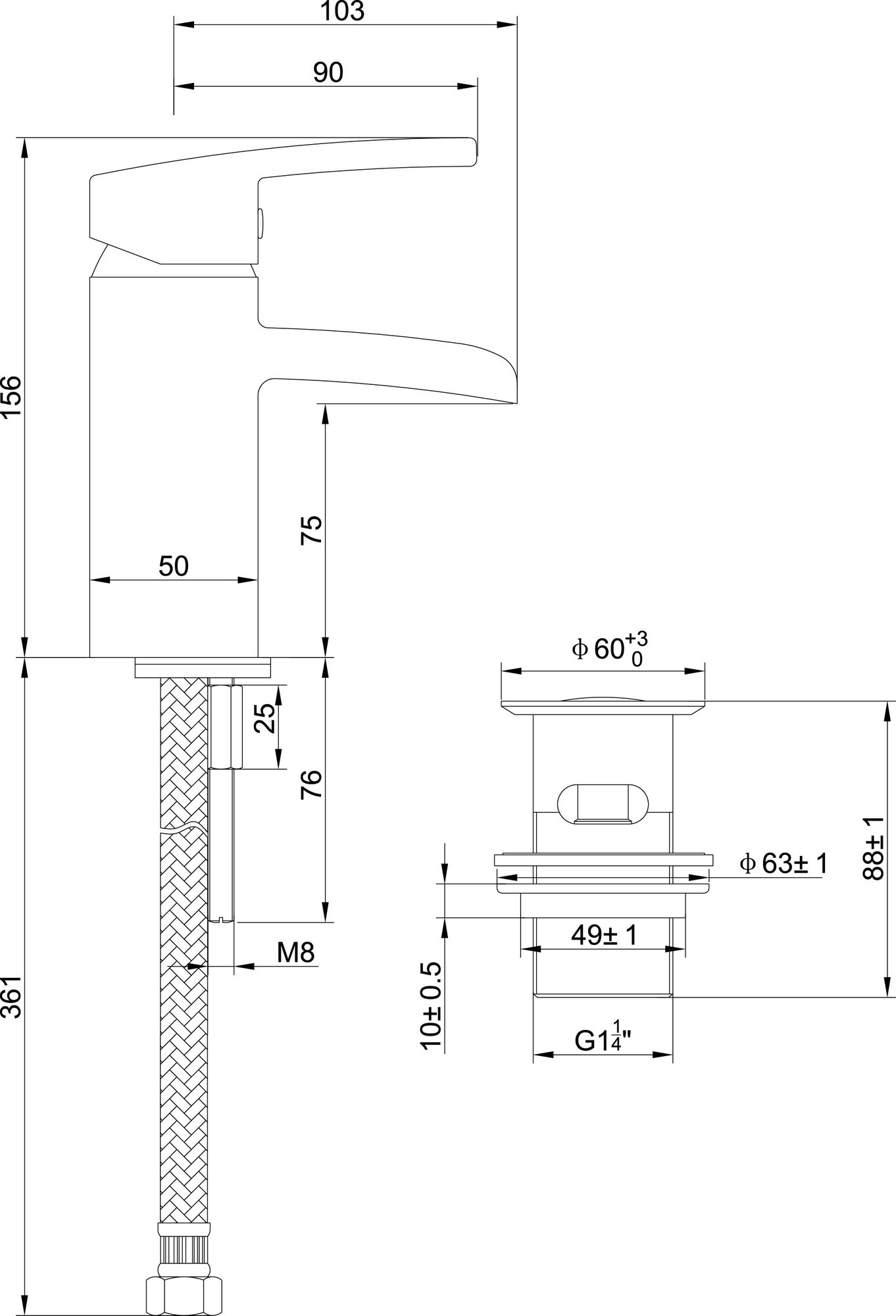 Wiesbaden Rombo waterval wastafelkraan met clickwaste | Chroom