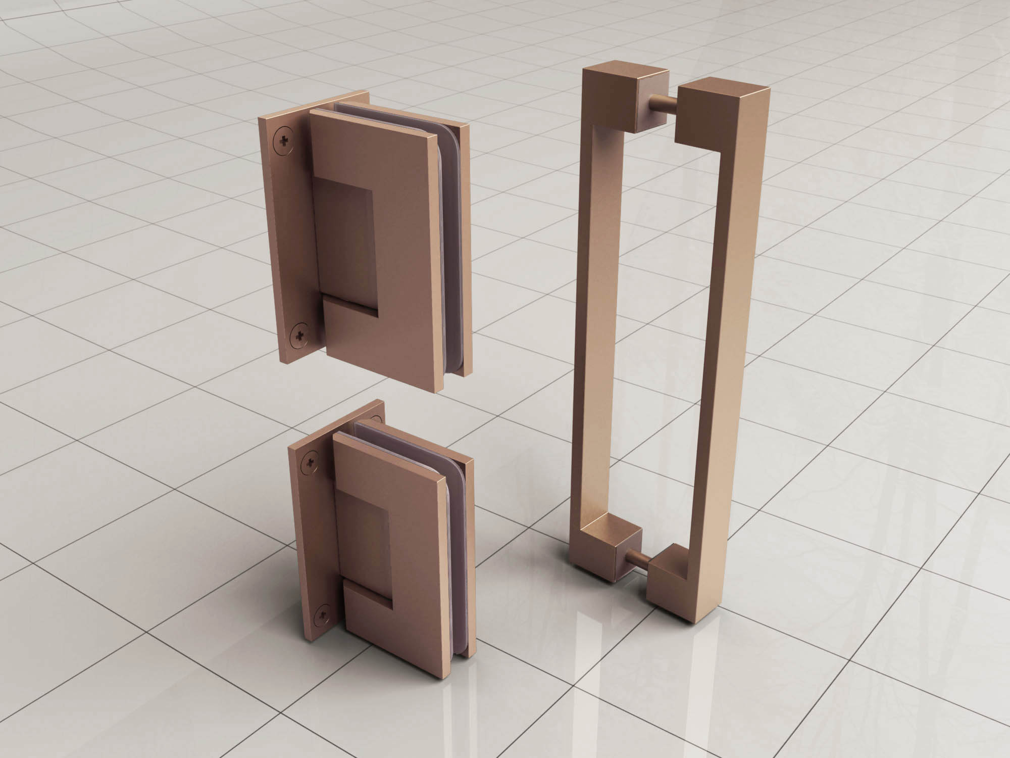 Vervang hiermee de chroom onderdelen van de profielloze nisdeur door geborsteld koper accenten.