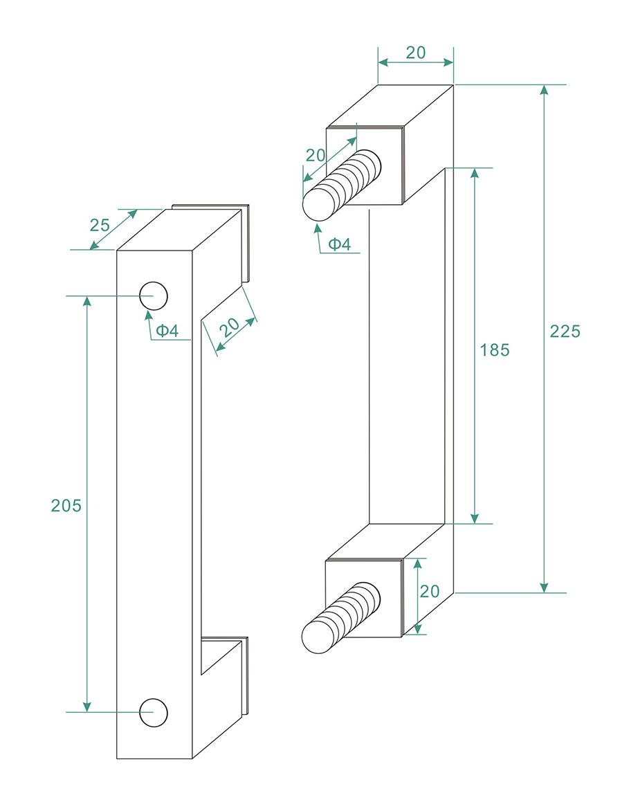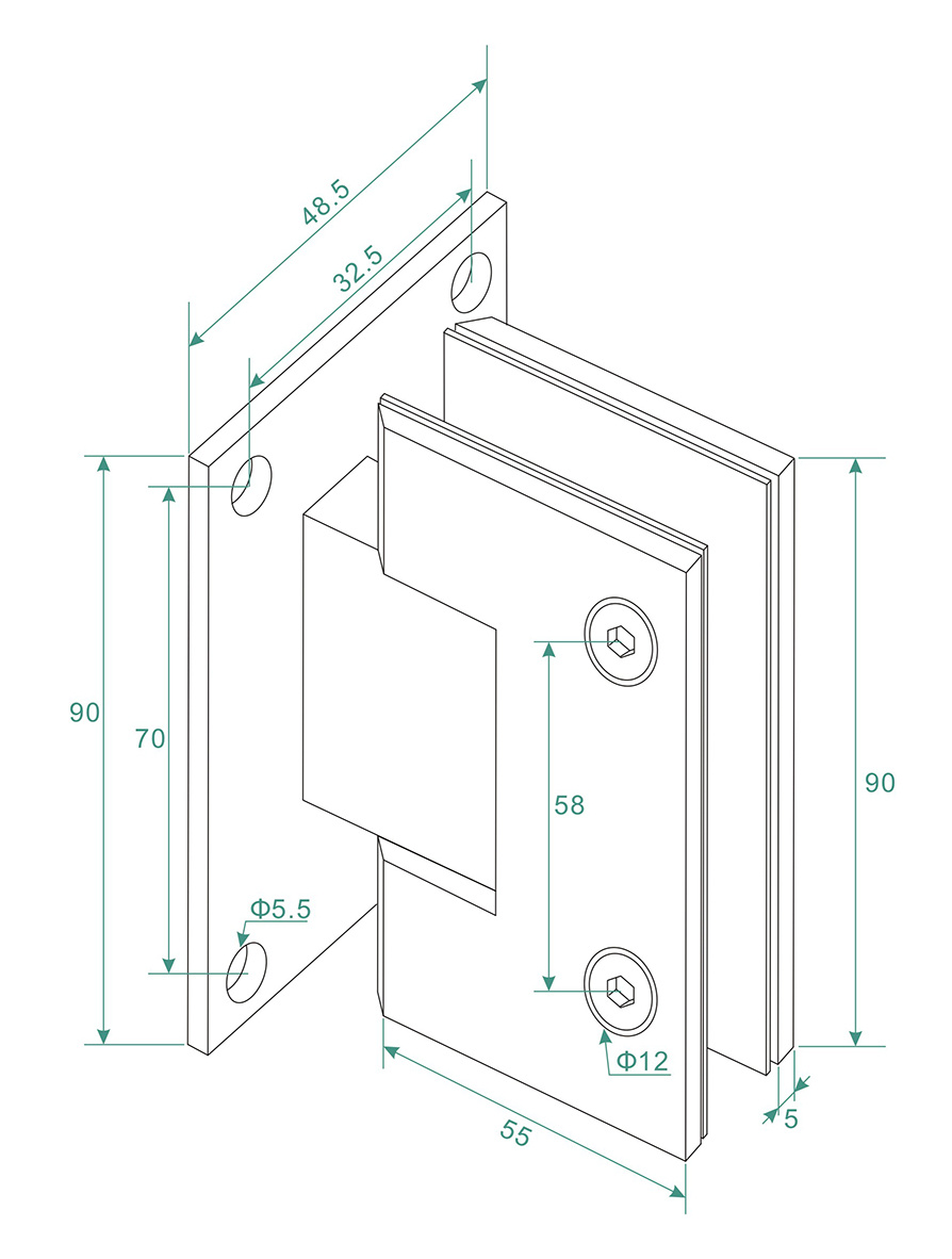 Scharnierset + hendel geborsteld messing tbv profielloze nisdeur