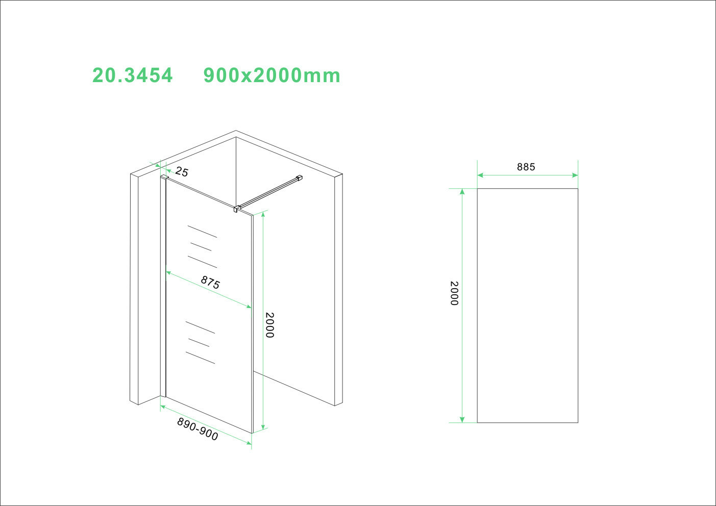 Maat: 900x2000 met NANO behandeld glas van 8mm dik