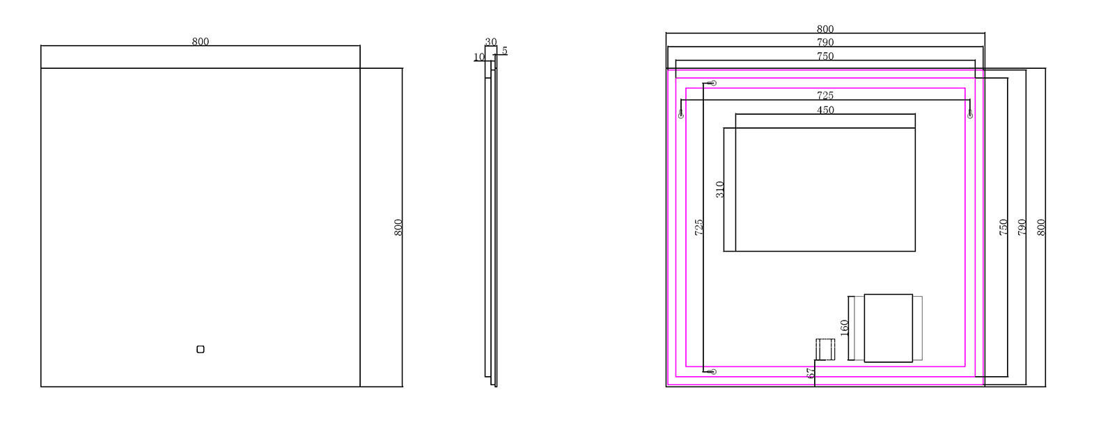 Offerte aanvraag voor Wiesbaden Soul spiegel rechthoek met LED, dimbaar en spiegelverwarming 80 x 80cm