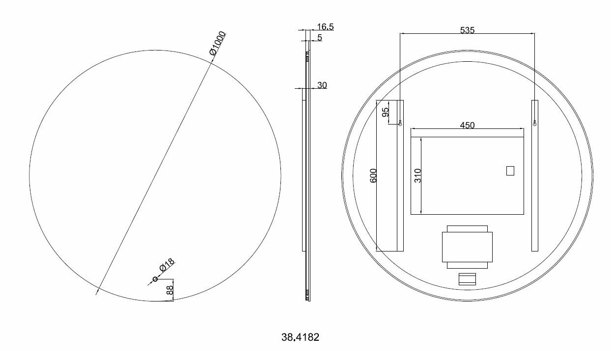 Voorzien van een spiegelverwarmings-mat van 450x310mm ter voorkoming van condensvorming