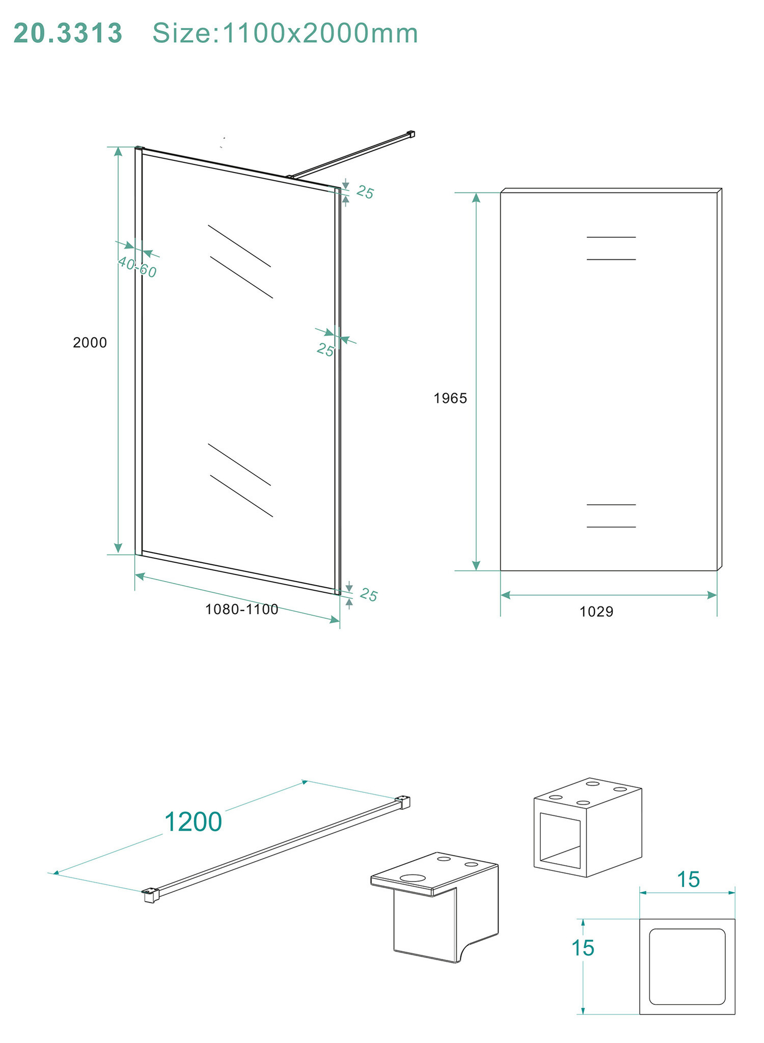 Wiesbaden Square inloopdouche 110x200 10mm nano | Helder glas/Mat zwart