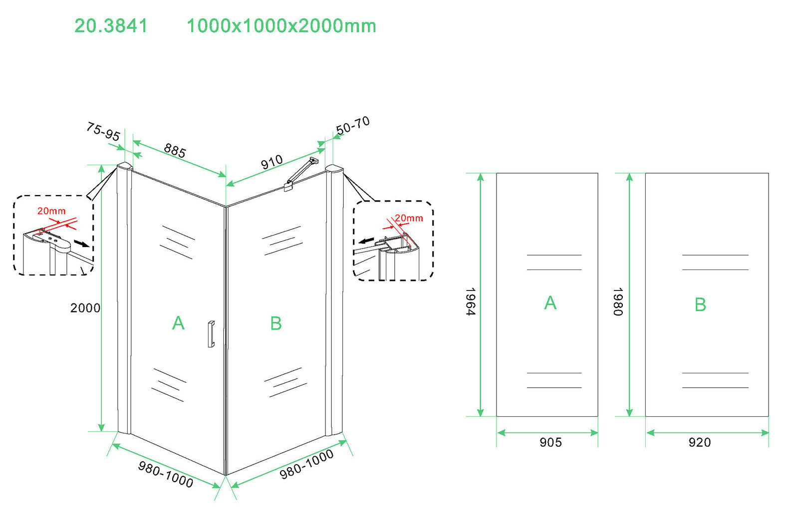 Universeel installeerbaar (deur links of rechts). Veiligheidsglas 8mm dik met NANO coating