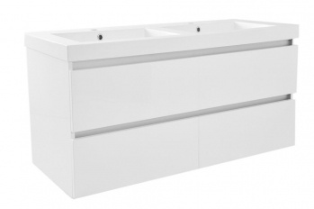Wiesbaden Vision wastafel dubbel met 2 kraangaten 120x46x5,5cm kunstmarmer | Glans wit