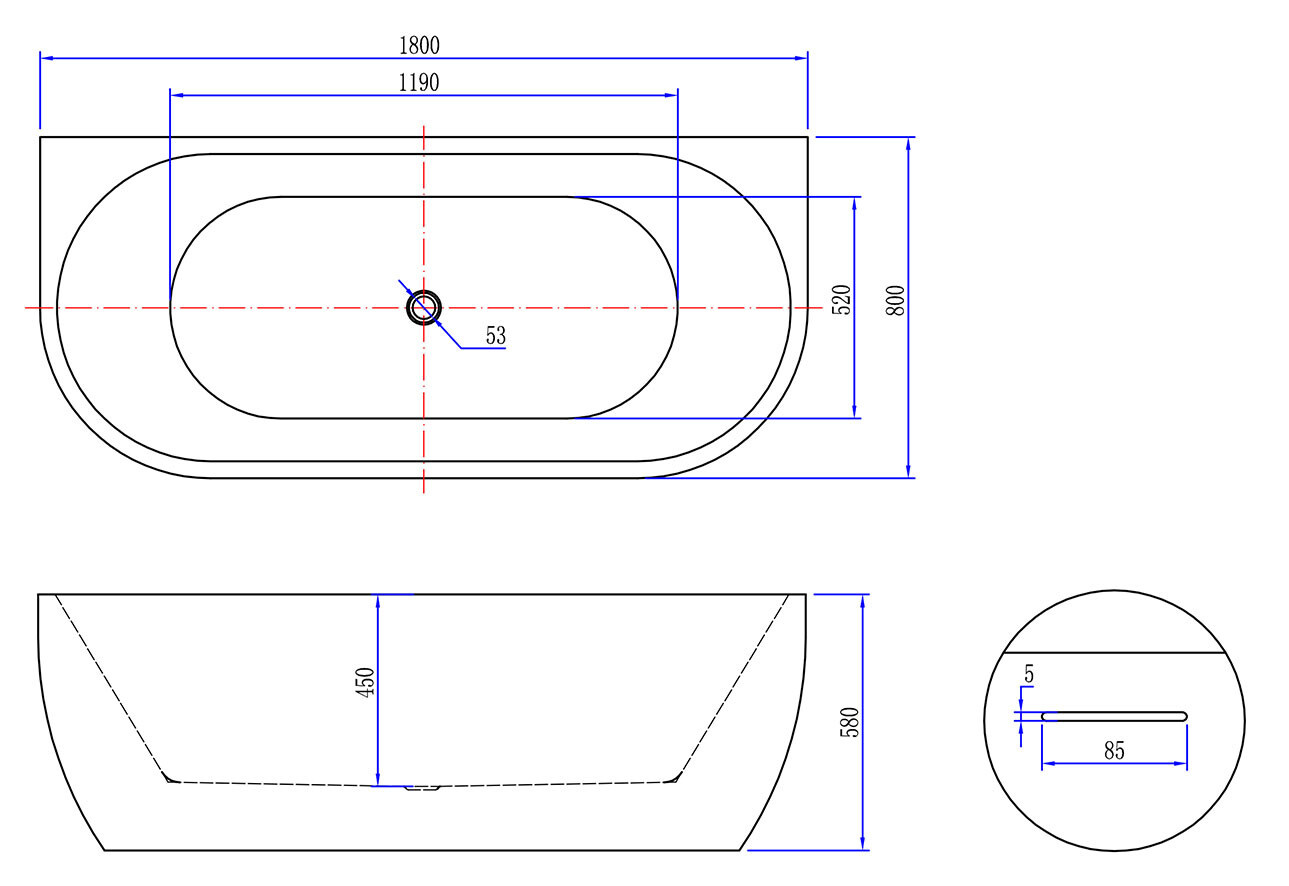 Offerte aanvraag voor Wiesbaden Wall half vrijstaand ligbad 180 x 80cm acryl | Glans wit | met waste | Glans wit