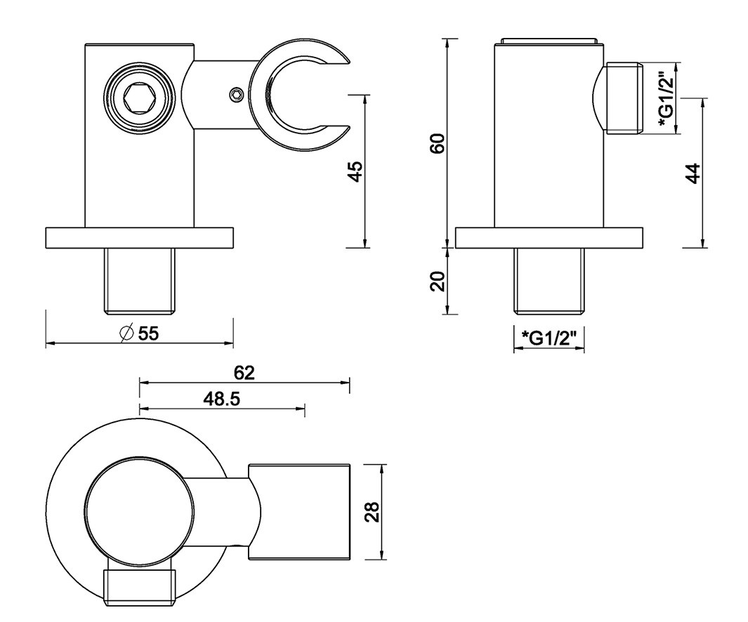 Wiesbaden Wandaansluitbocht met kantelbare handdouchehouder rond 1/2" - Gunmetal