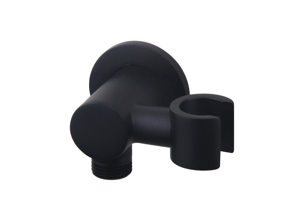 Wiesbaden Wandaansluitbocht met kantelbare handdouchehouder rond 1/2" - Mat zwart