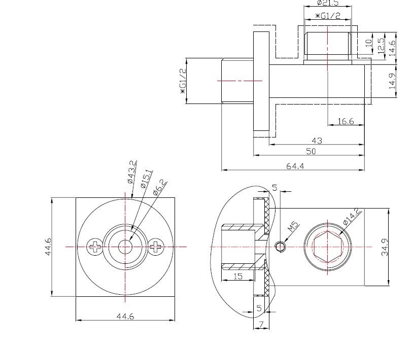 Wiesbaden Wandaansluitbocht vierkant 1/2" | Chroom