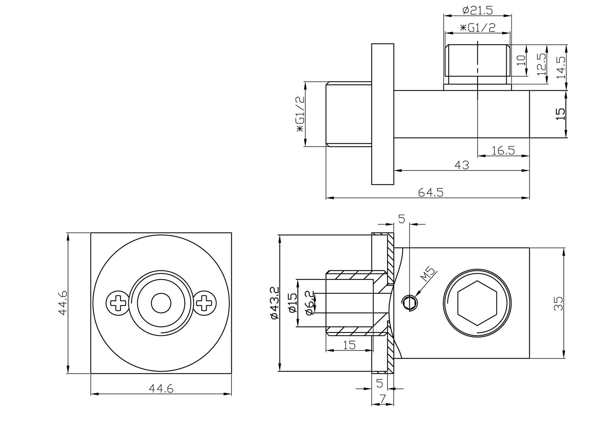 Wiesbaden Wandaansluitbocht vierkant 1/2" | Geborsteld staal