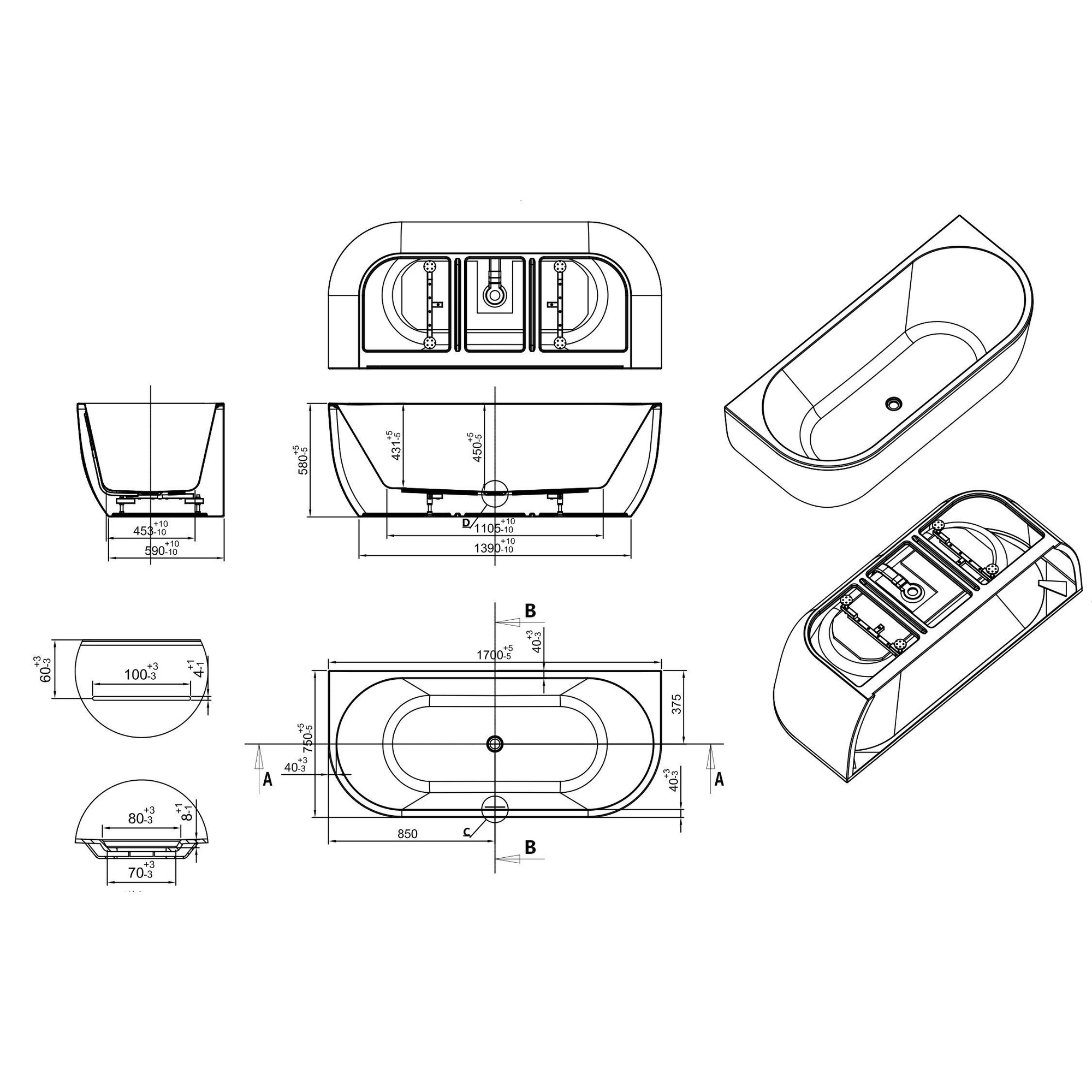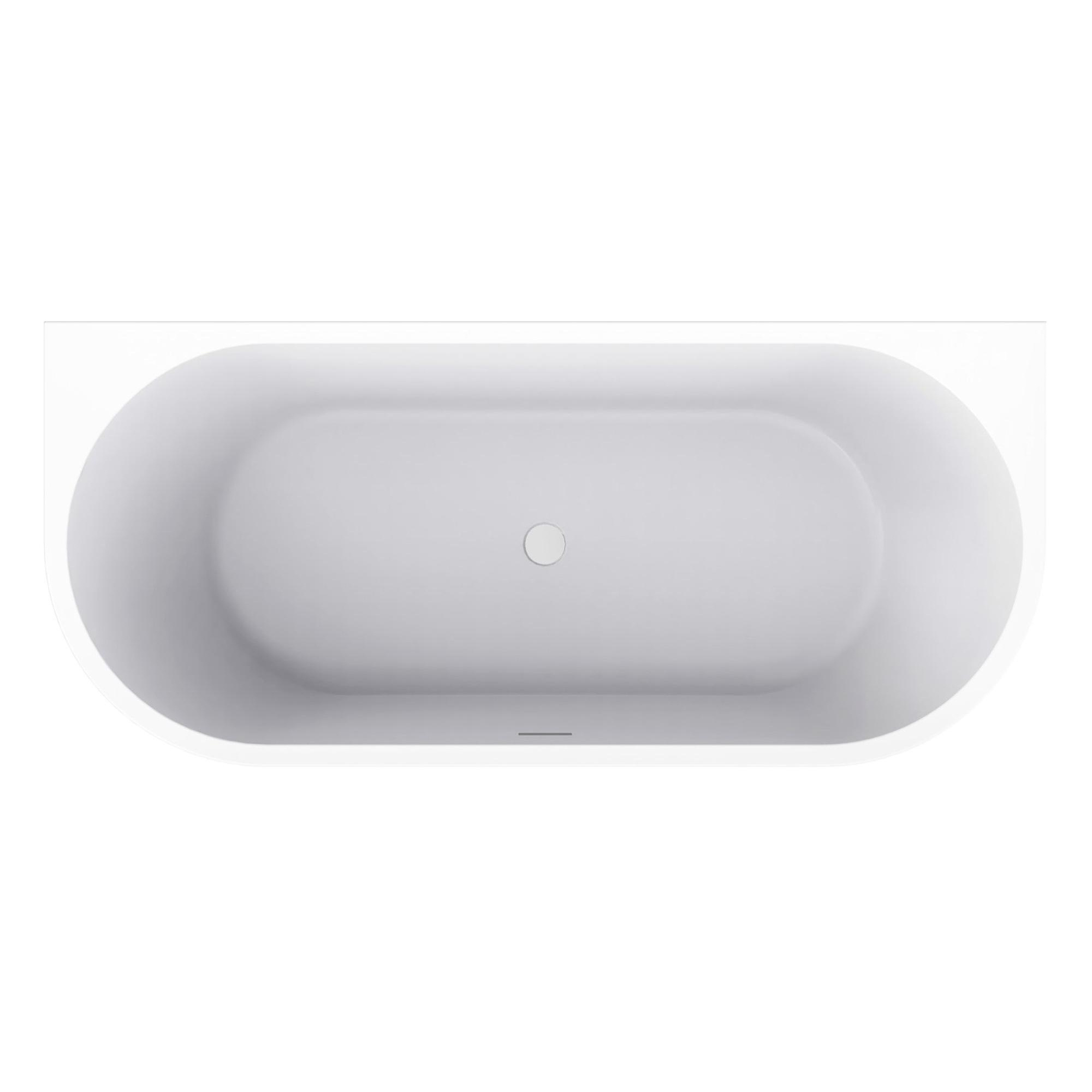 Het Zenn half vrijstaand ligbad heeft een strak en minimalistisch ontwerp met een royale afmeting van 170 x 75 cm. De brede rand aan de muurzijde biedt extra comfort en gebruiksgemak, ideaal voor het plaatsen van accessoires of een badrandcombinatie.