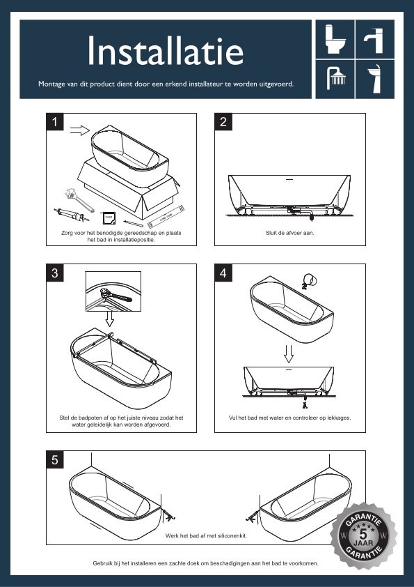 - Vervaardigd uit hoogwaardig acryl, wat het bad duurzaam en eenvoudig te onderhouden maakt.