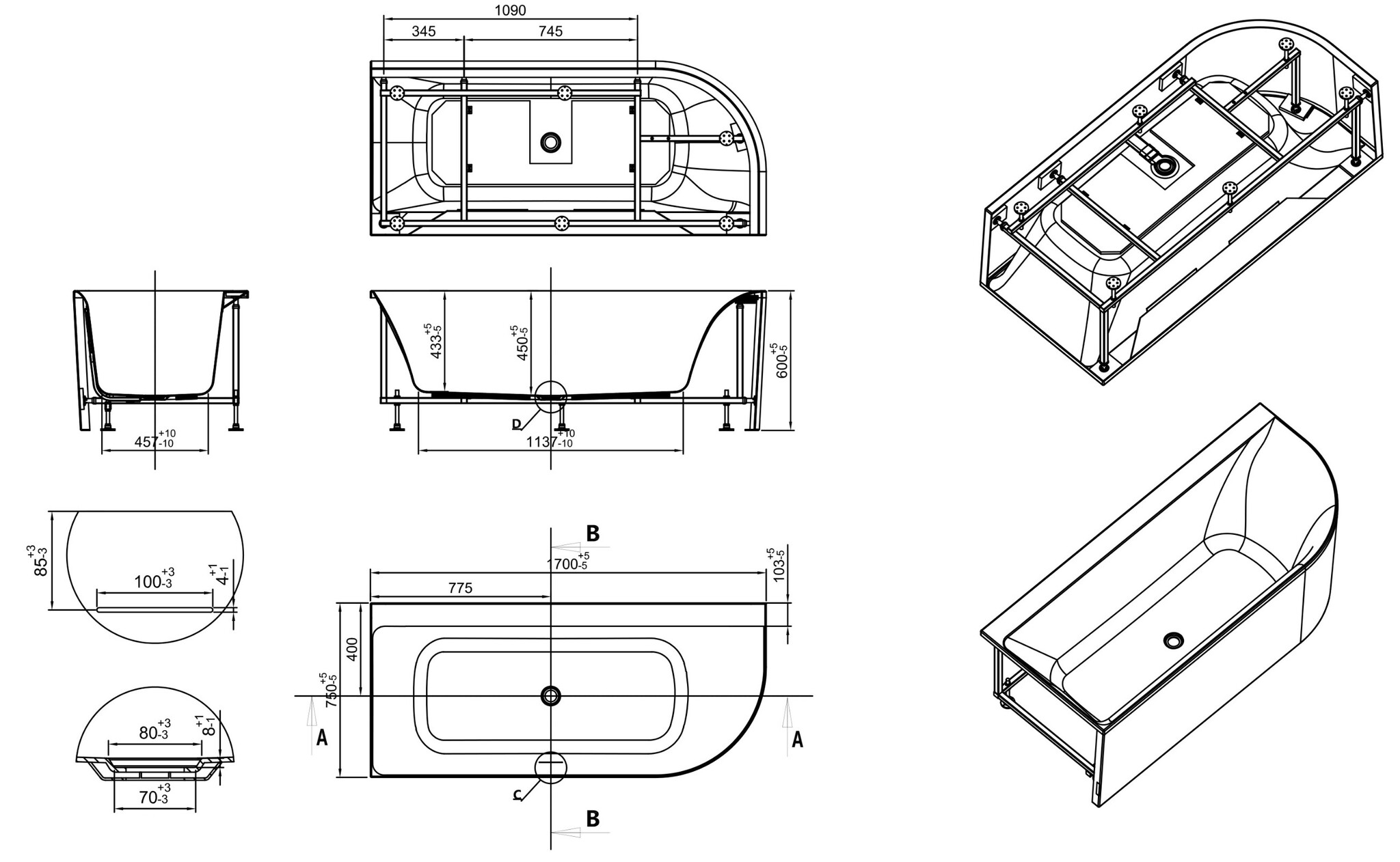 Met een afmeting van 180 x 80 cm biedt dit hoekbad voldoende ruimte voor een comfortabele en ontspannende ervaring. De brede rand van 10 cm aan de muurzijde geeft niet alleen een moderne uitstraling, maar biedt ook ruimte voor badaccessoires.