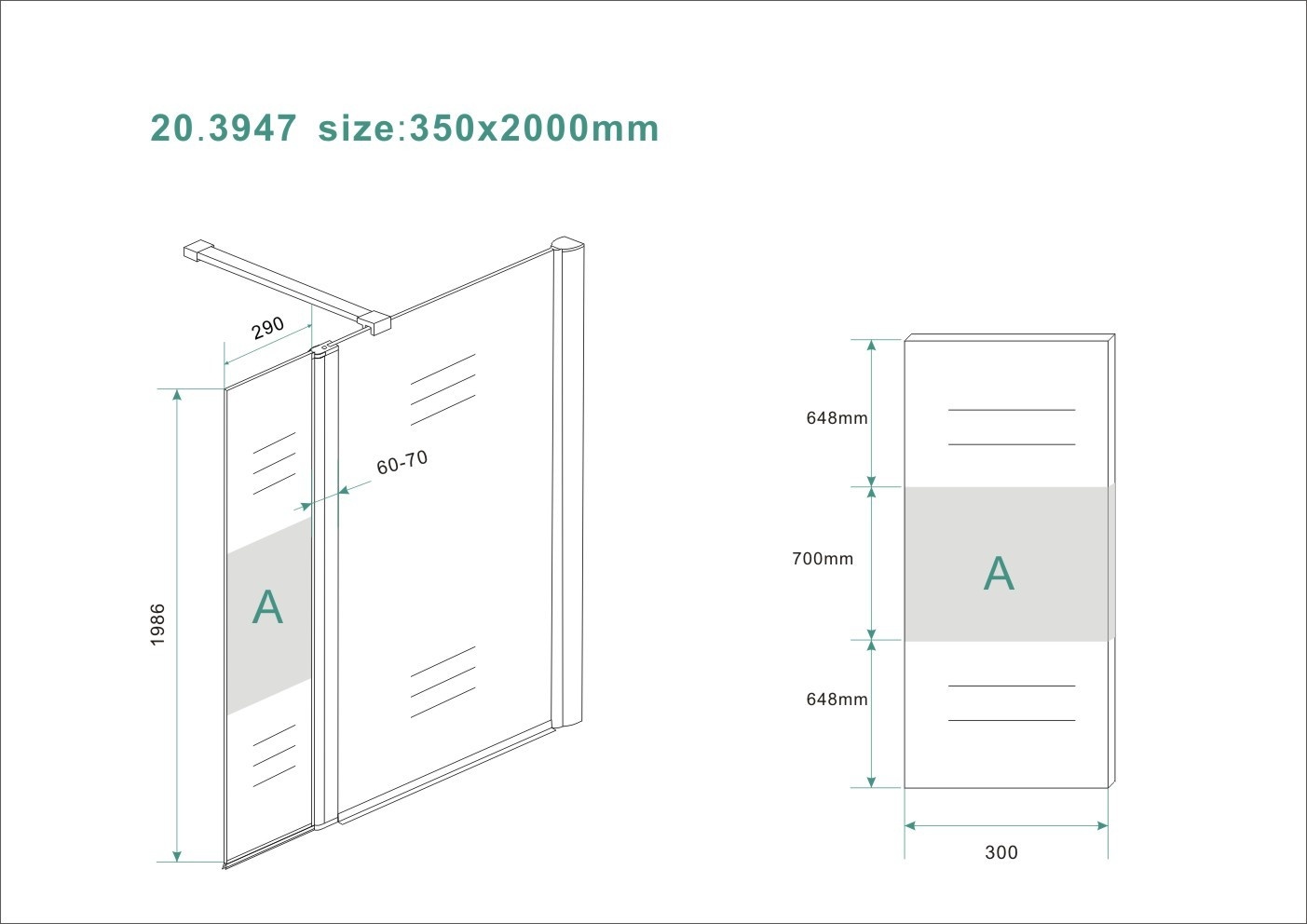 Wiesbaden Zijpaneel 35 x 200cm met scharnierprofiel rechts | Chroom | met 10 mm NANO Matglas