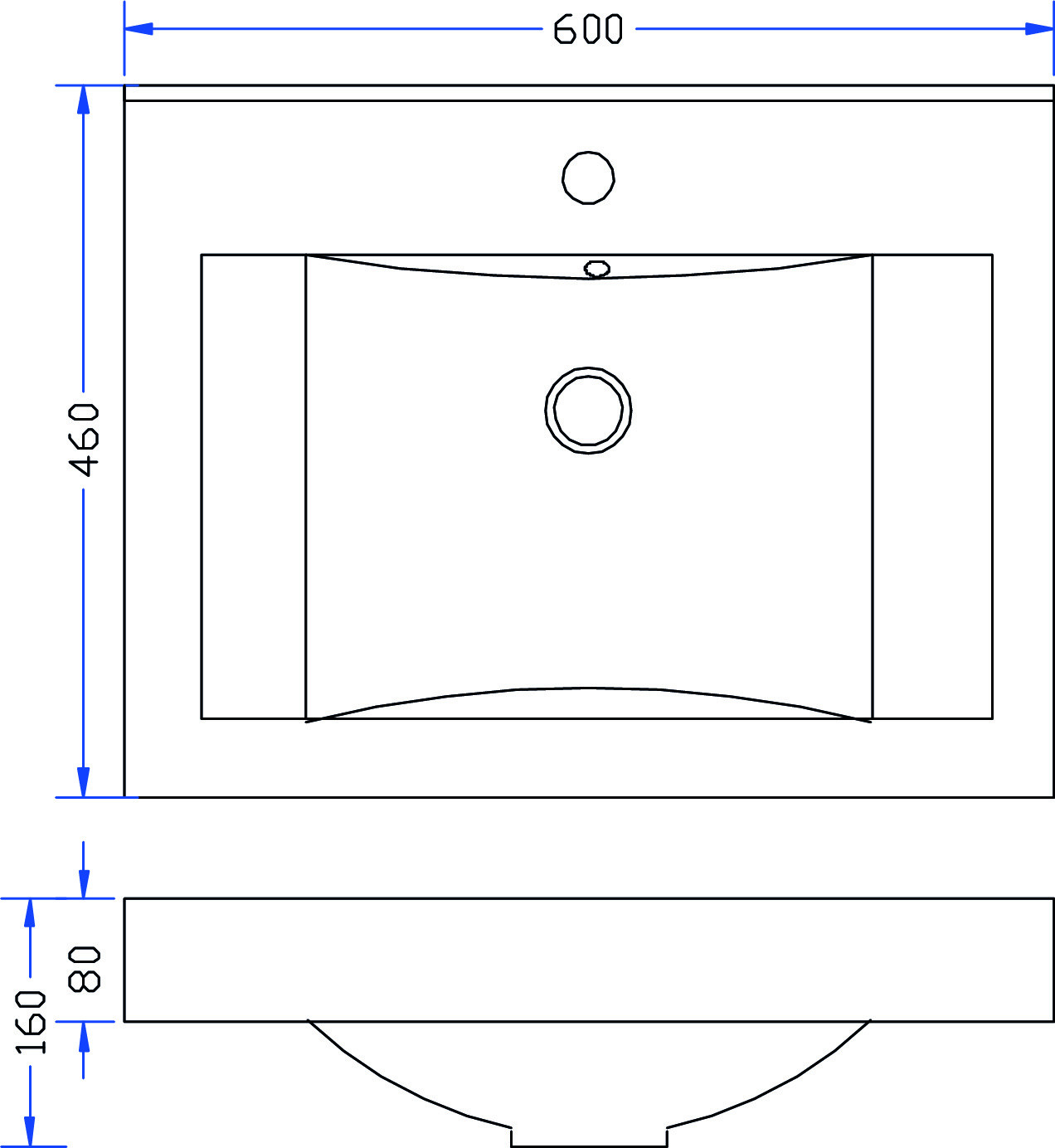 Wiesbaden Tigris wastafel enkel met 1 kraangat 60x46x8 cm kunstmarmer glans wit