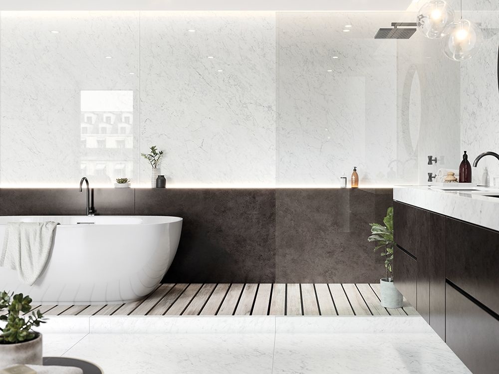 Maak van je muren een elegant kunstwerk met de XTone Carrara White Nature wandtegels en transformeer je interieur in een ruimte die luxe uitstraalt en tegelijkertijd praktisch en duurzaam is.